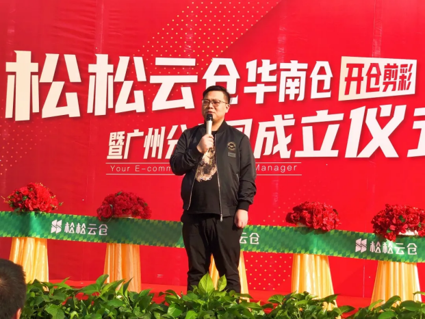 特邀嘉賓米云劉總致辭:“我們從2018年開始和松松合作,一直到現在。松松華南倉開倉伊始,我們再次與松松達成商業合作,來解決倉配物流后端的問題,就像松松的slogan所說的‘選擇松松,發貨輕松’,希望松松的小伙伴們把華南倉建設的更好,最后祝福松松華南倉開倉大吉、萬事順利。”