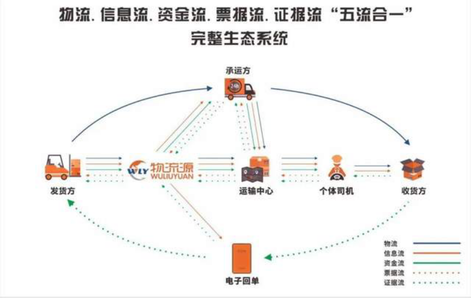 物流源在云端構建了五流(物流、信息流、資金流、票據流、證據流)合一的完整生態系統,貨物管控和安全簽收是整個生態的核心,物流業務貫穿整個生態,最終生成有法律效力的數字化回單,通過對業務的場景化,商品流,物流,信息流和證據流相互印證形成完整的物流溯源體系。