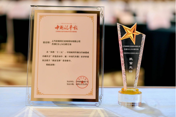 12月22日,由中國汽車報(bào)社主辦的“車輪上的中國—商用車助力全面建設(shè)小康社會年度盛典” 在北京圓滿落幕,我國民族知名重卡企業(yè)——上汽依維柯紅巖商用車有限公司(以下簡稱“上汽紅巖”)因在全面建成小康社會事業(yè)中作出突出貢獻(xiàn),被授予“大國基石”榮譽(yù)稱號,同時(shí)旗下紅巖杰獅C6 LNG牽引車獲得“致富先鋒”殊榮。