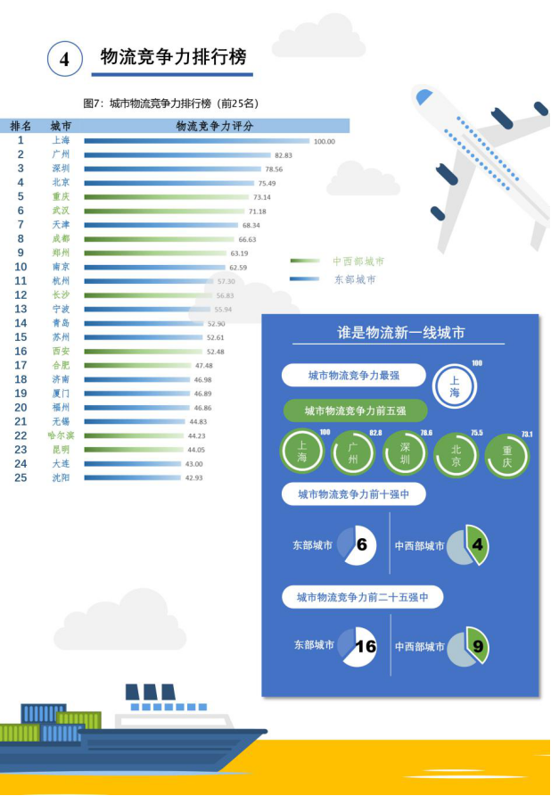 報告以城市為單元,重點研究中國物流發(fā)展的整體格局和演變特征,通過構(gòu)建城市物流競爭力評價指標,對全國302個直轄市和地級市(自治州、盟)的城市物流競爭力進行量化評價,重點分析了城市物流發(fā)展的區(qū)域特征、城市類型及典型案例。