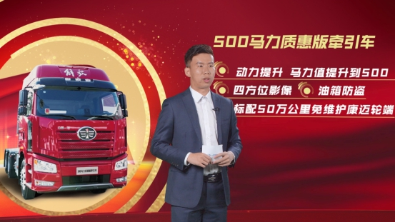 新春大拜年直播活動中,一汽解放市場部產品戰略室產品研究工程師范迪先生介紹2021年重點車型產品