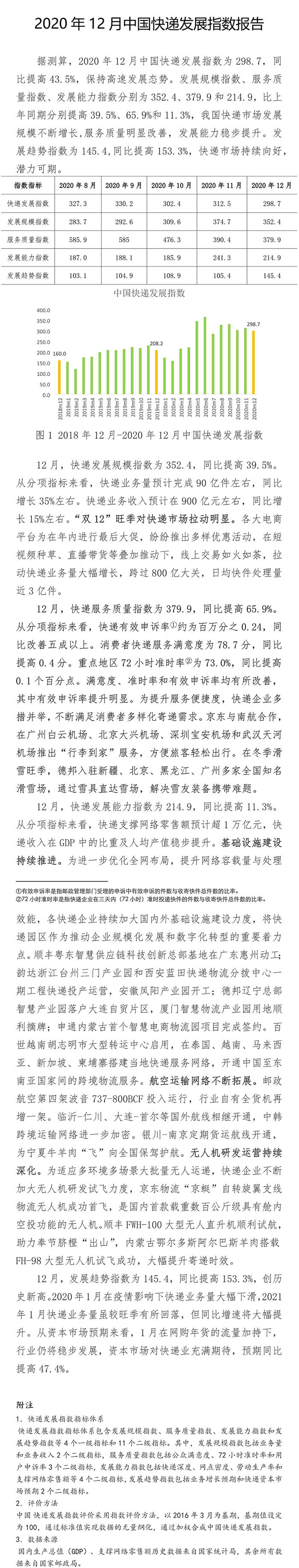 2020年12月中國快遞發展指數報告