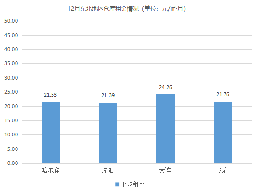 全國32個城市倉庫平均租金為27.58元/㎡·月,環比下降0.39%。其中,東部地區倉庫平均租金(34.12 元/㎡·月)高于西部(24.40元/㎡·月)、中部(24.02元/㎡·月)、東北(22.06元/㎡·月)地區。相較11月,東北、東部、中部、西部地區倉庫平均租金相對穩定,增(降)幅±1%以內。