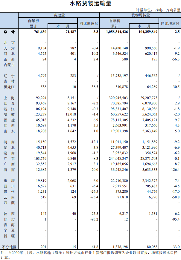 2020年12月水路貨物運(yùn)輸量