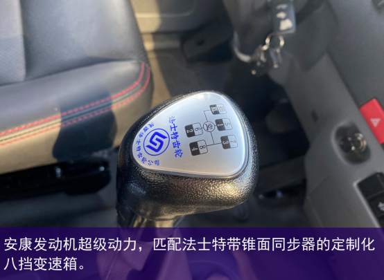 根據法規要求,總質量18T情況下,最高車速為110km/h。德沃斯搭載的是安康發動機超級動力,最高功率達到220馬力,最大扭矩輸出為820N·m,匹配法士特帶錐面同步器的定制化八擋變速箱,可以讓車輛在起步、加速、超車、爬坡時都更快,最高車速能夠達到每小時100公里以上,相比市面上很多限速每小時89公里的車,德沃斯的運行效率更高。