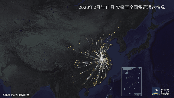 物流是國民經濟的“晴雨表”,物流大數據隱藏著全國經濟回暖的趨勢和走向。作為國內最大的“互聯網+物流”平臺,路歌為新華社提供了權威的大數據支撐。新華社文章通過物流業“忙起來”的數據變化投射了經濟的積極向好走向,以安徽省為例,從2020年2月至11月,該省至全國貨運通達城市從144個增至279個。