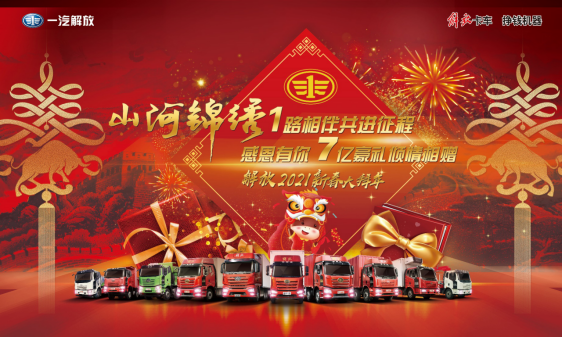 新春送暖,陪你過年!新春來臨之際,一汽解放期待與卡友們攜手共創(chuàng)豐收幸福年!2021年2月4日,農(nóng)歷“小年”這一天上午,一汽解放誠邀粉絲相聚解放直播間,帶大家悉數(shù)了解“解放2021新春大拜年”的多重禮遇和關愛措施。解放“新春大拜年”系列活動寵粉不斷,驚喜連連,以最大的誠意回饋多年來支持與信賴解放的車主朋友,除夕到初六,7億豪禮蓄勢待發(fā),屆時請您關注解放官微和新春抽獎活動,相信您會有意想不到的收獲!