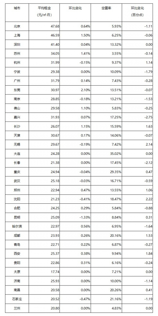 倉庫空置率較低的城市為蘭州、蘇州,均低于5%。相較1月,蘭州、蘇州倉庫空置率波動不大,市場穩定。