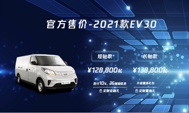 4月27日,2021款上汽大通MAXUS EV30正式上市,短軸款12.88萬元起、長軸款13.88萬元起,新車將以多重無憂品質,為用戶致富之路保駕護航。此外,上汽大通還為用戶帶來多重購車禮遇,包含定制金融禮(首付10%,36期超低息)、定制置換禮(定制升級置換禮包),超值的購車福利讓輕客更加“觸手可及”。