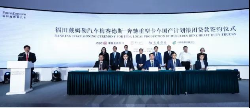 4月28日,福田戴姆勒汽車梅賽德斯-奔馳重型卡車國產計劃銀團貸款簽約儀式在北京順利舉行,工商銀行、中國銀行、交通銀行、郵儲銀行共提供51.69億元貸款用于國產重卡產品開發,標志著梅賽德斯-奔馳重卡國產化又向前邁進一大步,預計2022年國產奔馳重卡即可正式投放市場。