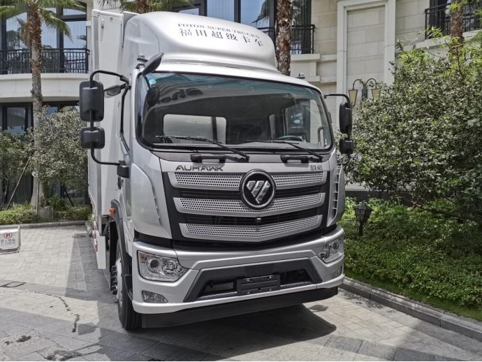 會(huì)議展出的歐航歐馬可冷鏈之星產(chǎn)品,不僅品質(zhì)過(guò)硬而且外形酷炫。整體外觀沿用福田汽車超級(jí)卡車家族式設(shè)計(jì),全車采用銀色涂裝,更加凸顯車輛“高端氣質(zhì)”。