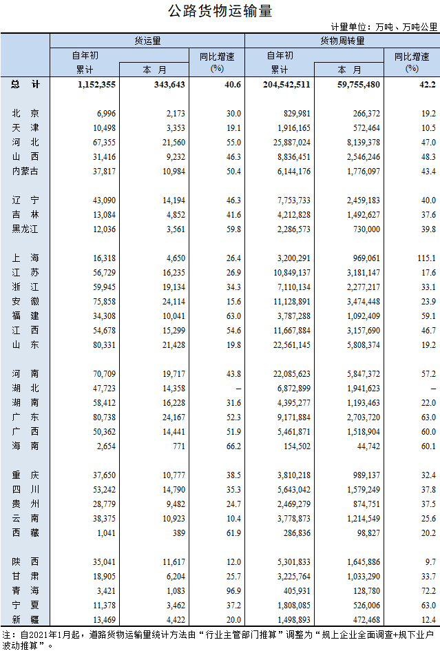 2021年4月公路貨物運輸量