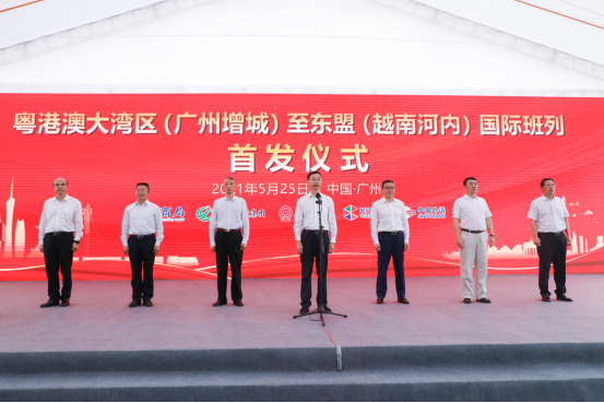 5月25日下午6時,隨著一聲響亮的汽笛聲,一列滿載41個標準集裝箱出口貨物的粵港澳大灣區(廣州增城)至東盟(越南河內)國際班列從廣州東部公鐵聯運樞紐駛出,將于4天后抵達越南河內。這是中國外運股份有限公司(以下簡稱“中國外運”)與廣州交通投資集團有限公司(以下簡稱“廣州交投集團”)、中國鐵路廣州局集團有限公司共同打造的首趟粵港澳大灣區至東盟國際班列,運輸貨物主要為原材料、高檔家私等產品。