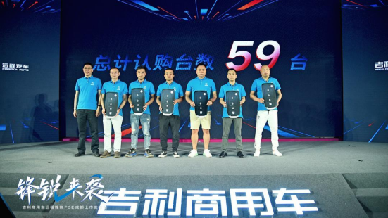 發布會現場公布了吉利遠程鋒銳F3E的價格,分欄板車與廂貨車兩個版本,售價11.88—13.18萬元,同時還可享受“創富五重禮”:看車就送精美禮品、訂車享受2000元抵5000元優惠、購車立得1000元充電卡、5000元金融貼息和3次免費保養,可謂誠意滿滿。現場客戶紛紛為之心動,掀起了一波認購高潮,總認購數達59臺。