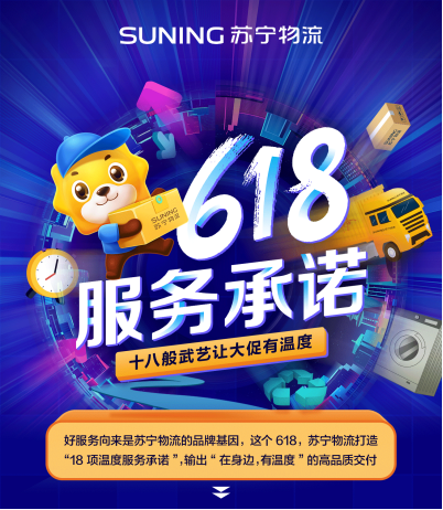 618期間,為全方位保障消費者“買得嗨”“收得爽”“退得快”,蘇寧物流推出“18項溫度服務承諾”,加碼“服務力”,真正為用戶帶去有速度有溫度的服務。