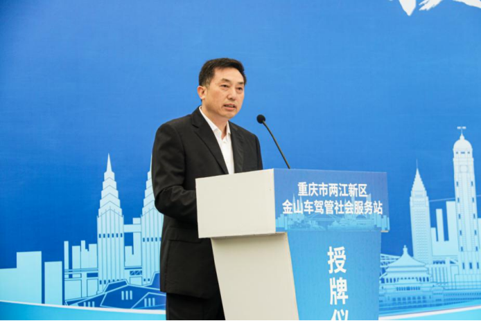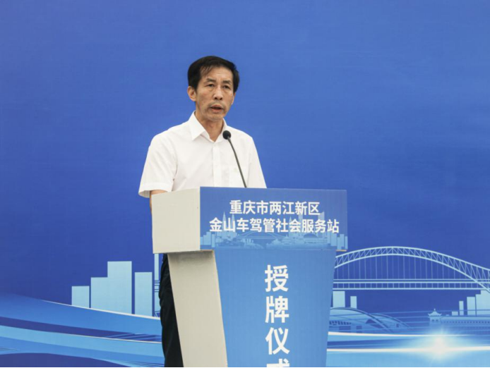 重慶兩江新區管委會二級巡視員張世福在講話中表示:”今天我們共同見證重慶兩江新區金山車駕管社會服務站正式授牌,這不僅是’放、管、服’改革的又一次成功實踐,同時也為更好地服務廣大企業和群眾拓寬了渠道,它將讓廣大機動車主‘只進一個門’就能同時辦理與車輛相關業務,實現省時、省力、省錢,真正帶來便捷。“