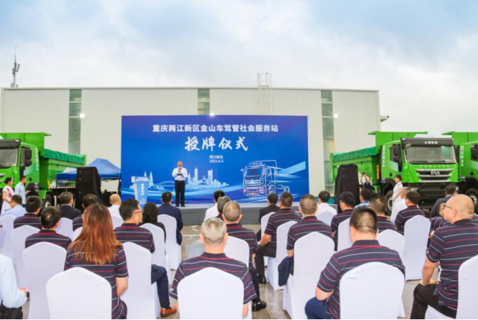 2021年6月3日,重慶兩江新區金山車駕管社會服務站正式授牌,這標志著在上汽紅巖試點設立全國重卡行業首家警企合作的“車駕管社會服務站”開始啟用。重慶兩江新區管委會、重慶市公安局交巡警總隊車管所、重慶兩江新區公安分局等相關部門以及上汽紅巖相關領導,共同出席本次活動,見證深入推進“放、管、服”改革的重要時刻,助力卡友“一站式”便捷快辦。