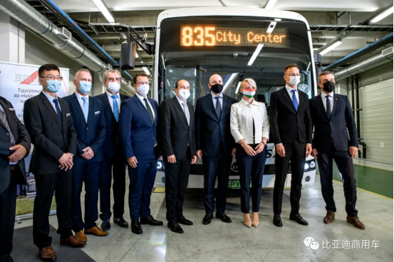 交付儀式在比亞迪匈牙利純電動大巴及卡車工廠舉行。匈牙利外交與對外經濟部部長西亞爾托(Péter Szijjártó),匈牙利科馬羅姆市長Attila Molnár,斯洛伐克科馬爾諾市長Béla Keszegh,Volánbusz集團董事長Homolya Róbert以及比亞迪代表出席見證并發言。