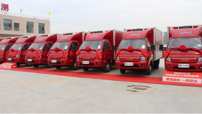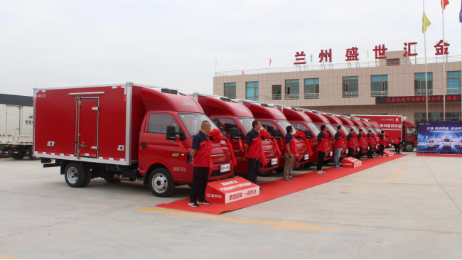 2021年6月26日,在美麗的金城蘭州,江淮冰博士愷達(dá)“百臺(tái)戰(zhàn)略部署”首批20臺(tái)冷藏“戰(zhàn)車”正式交付甘肅至仁同濟(jì)醫(yī)藥物流,為甘肅的醫(yī)藥物流運(yùn)輸行業(yè)保駕護(hù)航。