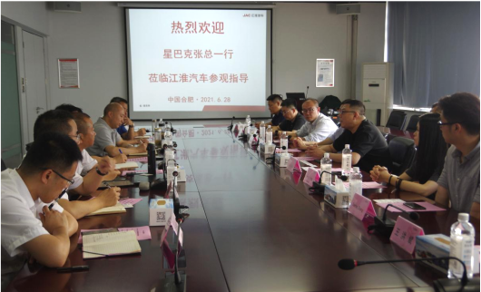 6月28日,星巴克攜DHL快遞、衛崗乳業、鮮生活等企業代表蒞臨江淮汽車參觀考察,開啟價值品鑒之旅。安徽江淮汽車集團股份有限公司副總經濟師、輕型商用車營銷公司總經理張先華陪同參觀考察,各方就鞏固和深化在物流運輸、冷鏈物流等領域合作的基礎上,進一步探索互利共贏的深度合作模式,助力“碳達峰”“碳中和”等進行了深入交流,并達成了合作意向。