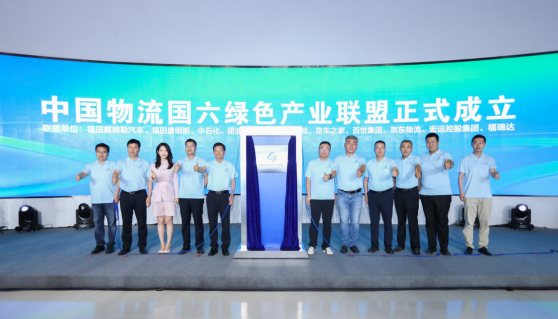 活動現場,為推動物流行業實現綠色低碳發展,宏遠控股集團、京東物流、福瑞達、福田戴姆勒汽車、平安保險、福田康明斯、團油、可蘭素、貨車之家、中石化等企業共同成立了中國物流國六綠色產業聯盟,并致力于國六卡車的規模化應用,倡導行業加速綠色發展步伐。