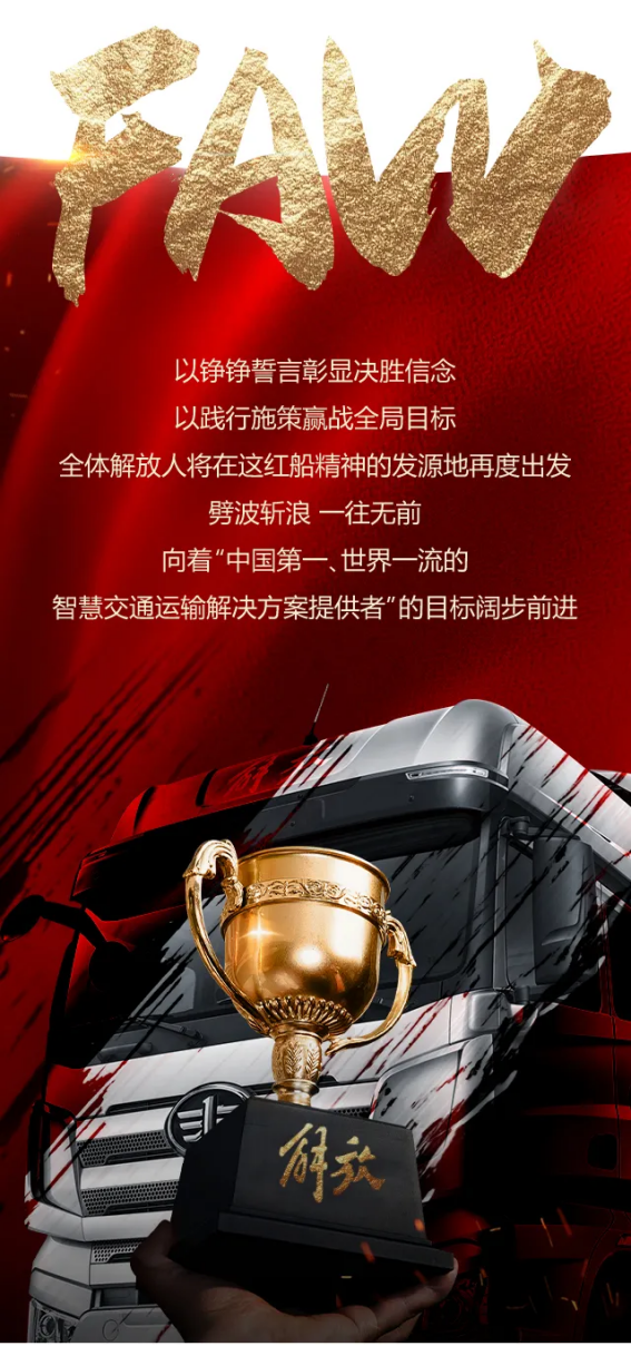 全體解放人也將以“做永不懈怠的攀登者、做國六時代的領航者、做終端客戶的掌控者、做未來業務的先行者”為目標要求,用絕不懈怠的精神、舍我其誰的氣魄、擔當進取、百折不撓的干勁和韌勁,掀開解放高質量發展的新篇章,矢志向著成為中國第一個百年民族汽車品牌而不懈奮斗!