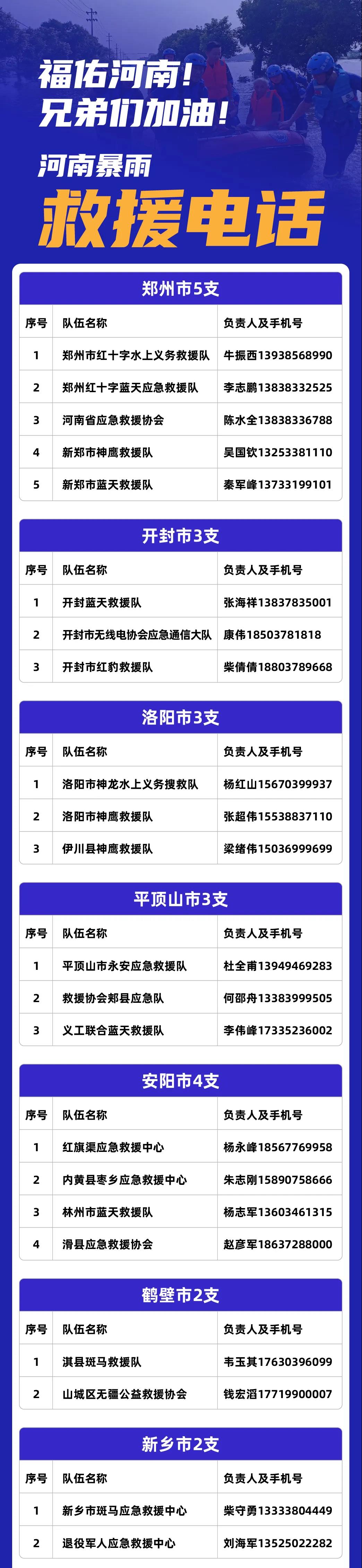 此外,河南多地遭遇持續性強降雨,若您身邊有人需要緊急救援,請撥打以下電話或帶#河南暴雨救援#話題詞發布微博求助,我們會上報給應急救援部門。