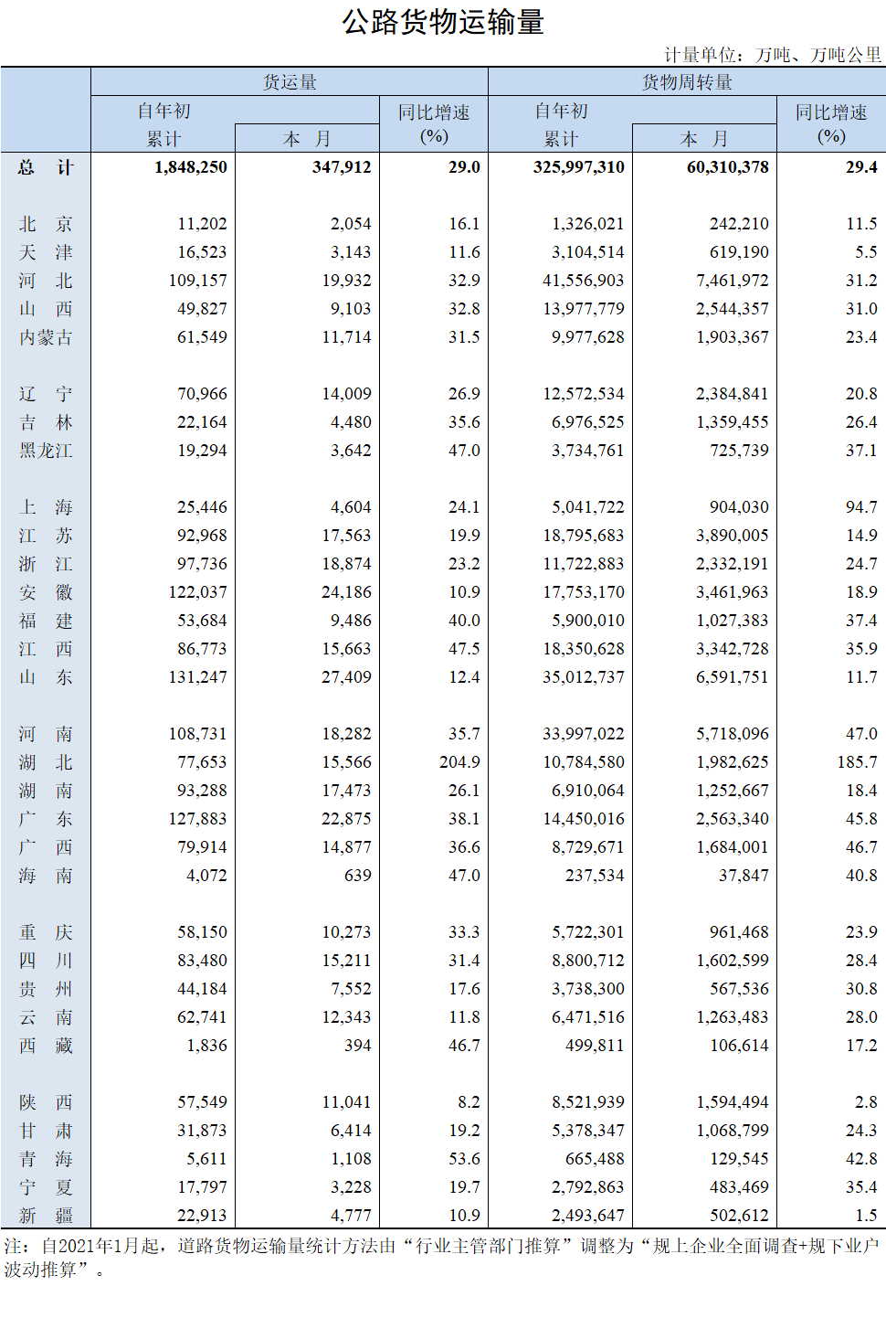 2021年6月公路貨物運(yùn)輸量