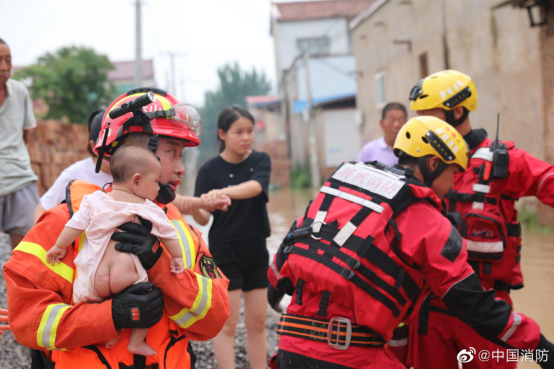 災情就是命令,救援刻不容緩。面對洪魔猖獗,黨和政府沒有退縮。應急管理部第一時間啟動消防救援隊伍跨區域增援預案,連夜調派周邊7省消防救援專業隊伍緊急馳援河南防汛搶險救災。當受災群眾看到身著亮眼橙色制服的“藍朋友”們到來,一種發自內心深處的信賴和感謝隨著熱淚迸發而出。