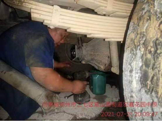 客戶的生意就是奧鈴人的命!得知鄭州卡友受困,以客戶服務宗旨的奧鈴輕卡勇奔現場。位于附近的奧鈴輕卡服務商于接到李師傅的求助后,初步判斷為車輛涉水導致主減速器或半軸損壞,及時協調好配件后就動身立即前往。雖然途中遭遇市內道路封閉,但服務站人員還是緊急聯系客戶開具社區證明,最終順利抵達。從李師傅撥通救援電話到服務人員到達現場,只過去了不到2個小時。在張紅軍和李文奎兩位師傅的全力搶修下,當日21點20分車輛維修完畢。但李師傅卻顧不上多說第二句感謝話,再次緊急投入到物資轉運工作中。