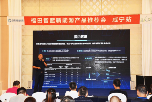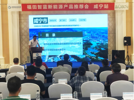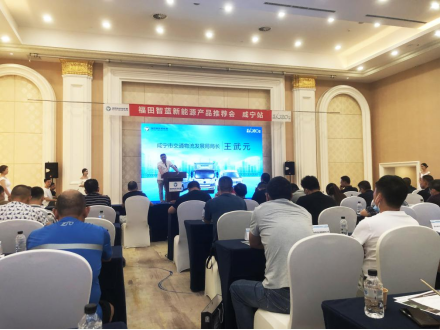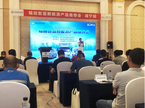 為加速城配市場新能源物流車輛的推廣應用,7月23日咸寧市召開新能源產品推介會,會議由咸寧市交通局主辦、福田智藍新能源承辦。咸寧市交通物流發展局局長王武元,以及80余家綠色示范企業代表出席。福田智藍新能源營銷公司副總經理車松剛現場介紹智藍城配物流一體化解決方案,助推咸寧綠色發展。