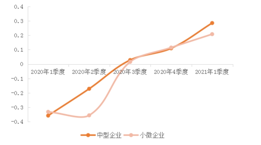此外,《報告》通過對比中型企業(yè)和小微企業(yè)發(fā)現(xiàn),小微企業(yè)具有靈活性較高,雖然受到疫情的沖擊更大,但復(fù)蘇反彈迅速。去年二季度,小微企業(yè)線上采購訂單量同比增速的下降幅度較在一季度有所擴大,但從三季度開始,小微企業(yè)便迎頭趕上,采購訂單量全面回升,同比增速實現(xiàn)正增長,且增速水平與中型企業(yè)接近。