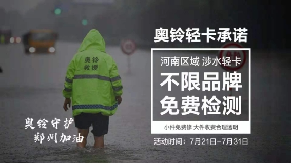 不限品牌,免費救援,小件免費維修!我們再一次看到了奧鈴輕卡率先行業(yè)作出的鄭重承諾。鄭州、新鄉(xiāng)、焦作、洛陽、南陽、平頂山、濟源、安陽、鶴壁、許昌等地的奧鈴輕卡服務站全面出動,招手即停。截止到22日18時,奧鈴輕卡救援隊伍已成功施救多個品牌在內(nèi)的上百例救援案例。此前在疫情期間,奧鈴就成為業(yè)內(nèi)第一家不限品牌提供救援的企業(yè),這次能夠再次一馬當先,把萬千卡友的利益放在第一位,一種敬意讓人油然而生。