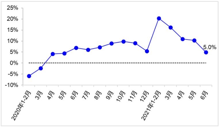 圖5? 近2年各月港口貨物吞吐量同比增速變化