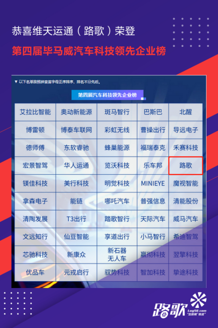 近日,全球頂尖咨詢機構畢馬威發布第四屆中國領先汽車科技企業50榜單。路歌榮登中國領先汽車科技企業50強。