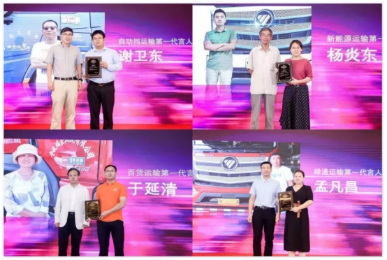 這14位“第一代言人”分別是:“換電重卡運輸第一代言人”張博文、“甲醇重卡運輸第一代言人”張朔、“班線客運第一代言人”欒立山、“天然氣重卡運輸第一代言人”柏水、“冷鏈運輸第一代言人”張利強、“商旅客運第一代言人”湖南龍驤集團、“自動擋運輸第一代言人”謝衛東、“綠通運輸第一代言人”孟凡昌、“城配運輸第一代言人”張先根、“新能源運輸第一代言人”楊炎東、“百貨運輸第一代言人”于延清、“AMT重卡運輸第一代言人”竇向永、“商貿運輸第一代言人”陳建明,以及“微卡運輸第一代言人”梁龍。