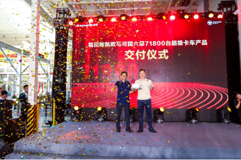 活動(dòng)同時(shí),在長(zhǎng)沙主會(huì)場(chǎng),福田歐航歐馬可國(guó)六第71800臺(tái)超級(jí)卡車也成功交付行業(yè)客戶。