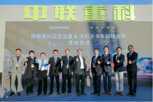展會現場,沃爾沃卡車還與中聯重科應急裝備舉行了戰略簽約儀式,雙方將合作拓展至銷售、服務、產品開發等多個領域,共同助力中國消防設備及應急救援探索更多解決方案。