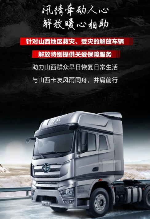 災害無情,人間有愛。一汽解放將始終與用戶心手相牽,時刻守護在您身邊,為卡友保駕護航。讓我們守望相助,攜手共“晉”,一起期待風雨后的新山西!