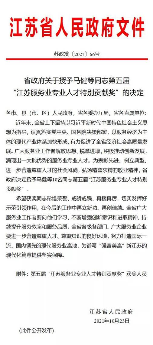10月23日,由省人力資源社會保障廳會同省發展改革委組織開展的第五屆“江蘇服務業專業人才特別貢獻獎”評選結果進行公示,經單位推薦、資格復審、專家評審、實地考察等程序,遴選出10名“江蘇服務業專業人才特別貢獻獎”表彰人選,中儲智運黨委書記、總裁戴慶富成功入選。