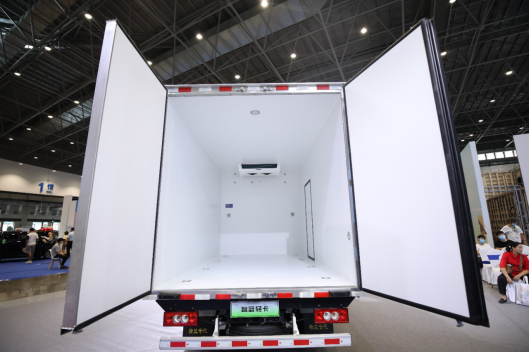 在產品設計之初,產品上裝和底盤采用了一體化研發設計,實現了底盤上裝完美匹配。專屬純電動冷藏車底盤采用高強度多片簧設計、匹配4.5t后橋,有效提升承載力的同時,大大提高了操控平順性。配合知名品牌上裝、冷機,整車制冷性能、貨廂保溫性更優,全面滿足速凍食品、鮮活品以及醫藥品對深冷、中冷、保鮮等各溫段的需求,并保證其在整個運輸過程中均處于恒溫狀態。據測試,在30℃環境溫度下,車廂溫度從-18℃升至0℃,也需要1小時。整車更配裝了18.7立方的超大貨廂,載貨量更大;配合液壓尾板,裝卸更加便利,運輸效率更高。