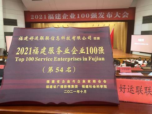 好運聯聯榮膺2021福建服務業企業100強(第54名)