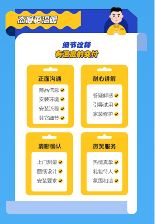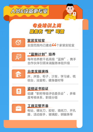在多方共識的基礎(chǔ)上,家居智慧服務(wù)共同體將以服務(wù)標(biāo)準(zhǔn)化為主線,以末端服務(wù)人員培養(yǎng)為抓手,以共建共享為發(fā)展目標(biāo),通過家裝實(shí)驗(yàn)室,共同探索、落實(shí)家居服務(wù)標(biāo)準(zhǔn),并培養(yǎng)賦能送裝服務(wù)工程師。圍繞家居,尤其是床、床墊、沙發(fā)、學(xué)習(xí)桌、健身器材等產(chǎn)品提供的送裝一體、送新取舊等服務(wù)進(jìn)行專業(yè)培訓(xùn),提升服務(wù)工程師的上門服務(wù)質(zhì)量,優(yōu)化消費(fèi)者購物體驗(yàn)。