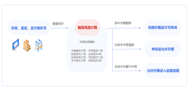 第一:針對網絡貨運實際業務,快貨運從稅務、交通、法律、數據安全、業務流程等多個維度打造的線上風控系統,通過智能化風控大腦,將運單產生的各項數據與85項運營規則進行對比,提前對不合規業務進行識別、攔截,而由于操作失誤、流程不規范等帶來的業務風險,企業也能收到預警,便于及時修正,讓自身經營更加合規。