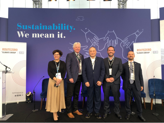 比亞迪歐洲有限責任公司商用車業務中心總經理何一鵬(左三)參加由氣候組織舉辦的RouteZero圓桌論壇