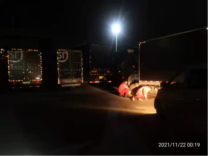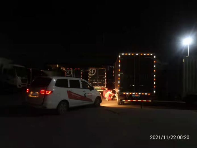 但是他們只考慮到錯(cuò)峰保養(yǎng)不耽誤用戶用車,卻沒有想到降溫后的鄭州,夜間露天室外工作是又黑又冷。保養(yǎng)工作剛準(zhǔn)備進(jìn)行,正裕服務(wù)站的服務(wù)人員就遇到了問題,此時(shí)已經(jīng)是深夜,室外停車場燈光微弱,而且快遞車輛多數(shù)停放于背光處,好在服務(wù)人員經(jīng)驗(yàn)豐富,打開了工作保障車的大燈,并將高度調(diào)低,對(duì)準(zhǔn)需要保養(yǎng)的車輛。