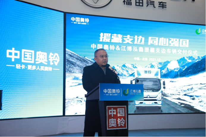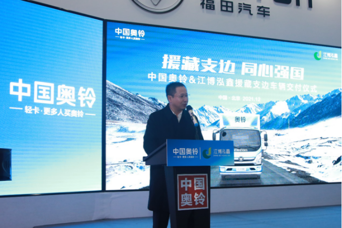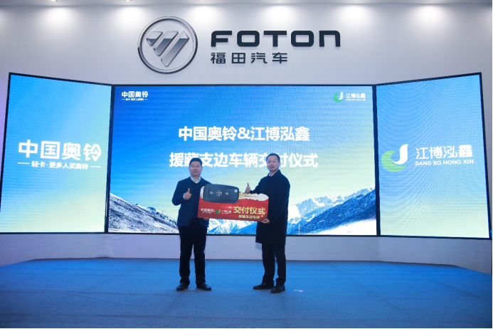 援藏支邊,同心強國。12月12日,中國奧鈴&江博泓鑫援藏支邊車輛交付儀式在北京八通華瑞汽車銷售公司內舉行。此次交付的國六車輛將作為京東生鮮的承運用車,遠赴平均海拔4500米的西藏阿里地區,成為奔跑在“世界屋脊的屋脊”上的運輸中堅力量。