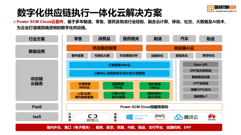 新一代供應鏈信息化平臺的架構更多地會考慮可執行的系統,科箭供應鏈管理云平臺-Power SCM Cloud包含對于全渠道訂單的管理;分發倉配之間的運輸執行;供應鏈協同端的供應商、客戶、經銷商、承運商、司機、藥店、醫院,可以在平臺上作快速的共享和連接;基于供應鏈執行的數據,做供應鏈計劃,包含需求優化、網絡優化、需求預測、庫存網絡預測、運輸優化等等。