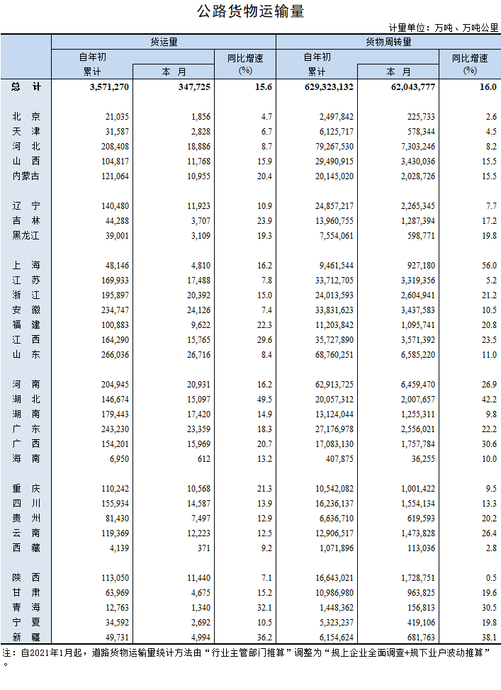 2021年11月公路貨物運輸量