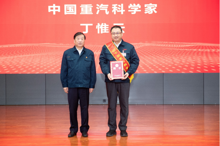 (譚旭光為首次聘任的中國重汽科學家丁惟云頒發聘書)